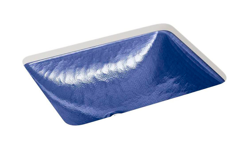El lavamanos empotrado de vidrio opaco Yepsen presenta un patrón lineal que se une en las esquinas, formando un diseño en “Y” alrededor de su contorno exterior. Como las ondas de una piscina, sus relieves distintivos capturan la mirada mientras disimulan con sutileza los objetos almacenados debajo.
